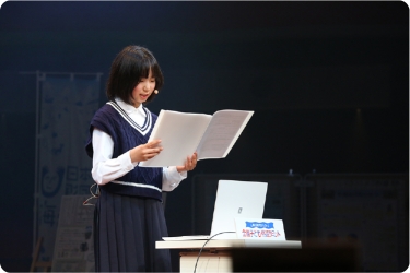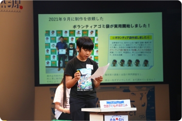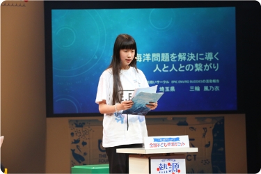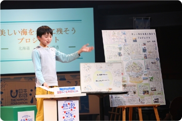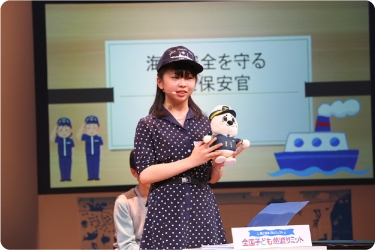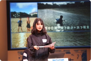 ご両親がともにライフセーバーだという中村海童さん(京都府)は、慣れ親しんだ地元・宮津の美しい海を紹介。自身もライフセーバーになることを目指し、中学生になったら資格を取りたいと意気込みます。伊藤晏理さん(北海道)は、海の安全を守る海上保安官の志望者が減っていることを知り、海上保安庁の職員や女性保安官へインタビューを実施。「海上保安官を増やすだけではなく、海難事故を減らすことも大事」という気づきを得たことを報告しました。
