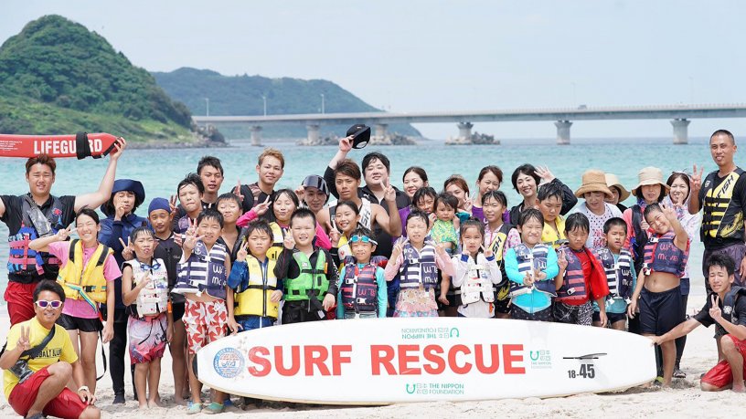 サーフィンを通じて角島の海に親しみながら地道な清掃活動を続けること数年。たまたま、サーファー仲間が溺れていた人を救助したことがきっかけで、新名さんたちは「海難事故防止の面で地域の役に立てる!」と思いたち、任意団体「角島サーフレスキュー」としてボランティアガードを開始しました。