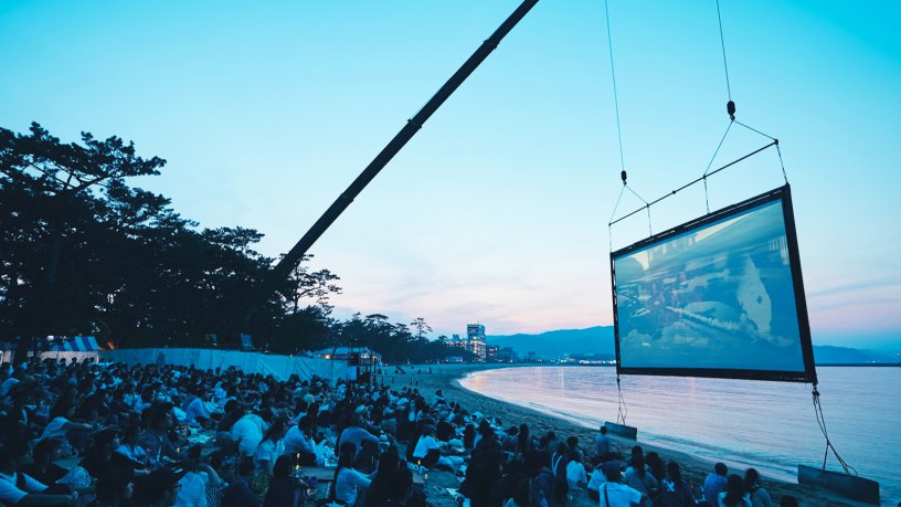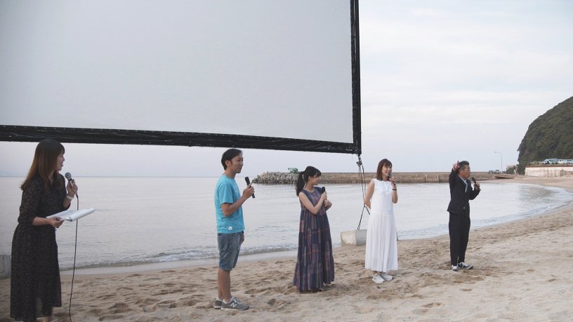 そのほか多数の地元民の賛同と協力のもと、海上のスクリーンに映す前代未聞の映画上映、しかも淡路島にちなんだ映画や海が舞台となった映画を、砂浜でくつろぎながら波音や潮の香りに包まれて楽しむという「うみぞら映画祭」が、現実のものとなりました。