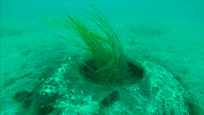 アマモの種苗を育てて海底へ移植する活動を続ける傍ら、アマモが安住できるシェルターのような“家”を開発したことが、保全推進の大きな一手となりました。その“家”の名は、「竜宮礁」。アマモの地下茎を守るドーム型の漁礁です。