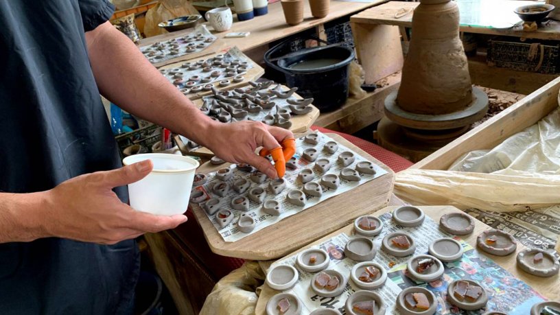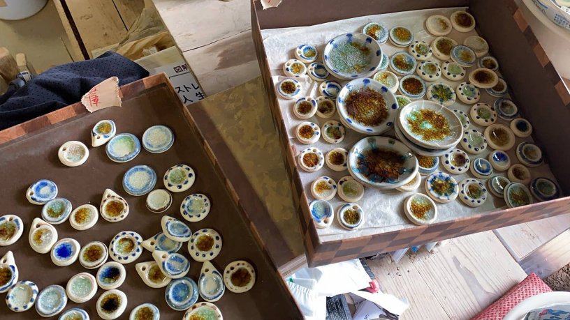 「色とりどりのシーグラスを読谷村の陶眞窯(とうしんがま)に持って行き、同じ窯でやちむんと一緒に焼くと、窯の中で融合するんです。やちむんの器の中にシーグラスの色が溶け込んだような神秘的でオンリーワンな仕上がりはとても素敵なので、小皿などの器のほか、ペンダントやストラップに加工したりして、読谷村のおみやげとして育てたいなと思っています。ゴミすべで集めたシーグラスでおみやげを作り、売上の一部をまた清掃活動費として使う。シーグラス集め大会をやれば子どもたちも楽しんでビーチクリーンに参加してくれますし、色々とうまく回る、良い“循環”ですね」