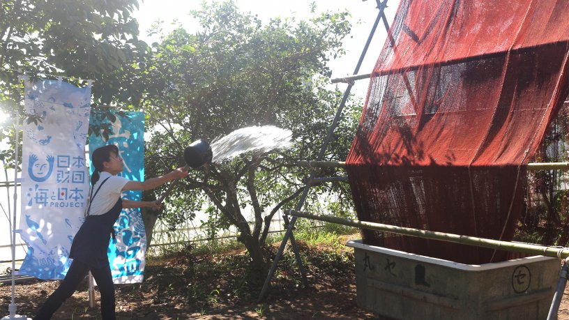 ①潮汐を見極め、澄んでいる場所を選んで海水を汲んでくる。