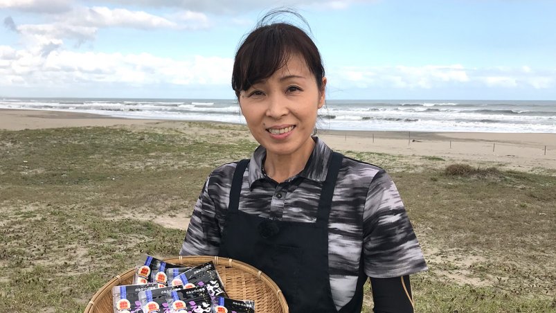 2019年4月、山路さんが海水を汲む海岸の本須賀海水浴場が、国際環境認証である「ブルーフラッグ 」を千葉県で初めて取得し、安心安全で美しい海岸であるというお墨付きを得ました。そして同年夏、山武の塩は商品パッケージをリニューアル。人と人とをむすぶ塩であって欲しいという想いを込めて、「塩(えん)むすび」と大きく記しました。