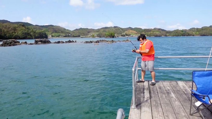 たっぷり楽しんで、おなかがすいたら、イカダの上で波に揺られながらゆったりと釣り。