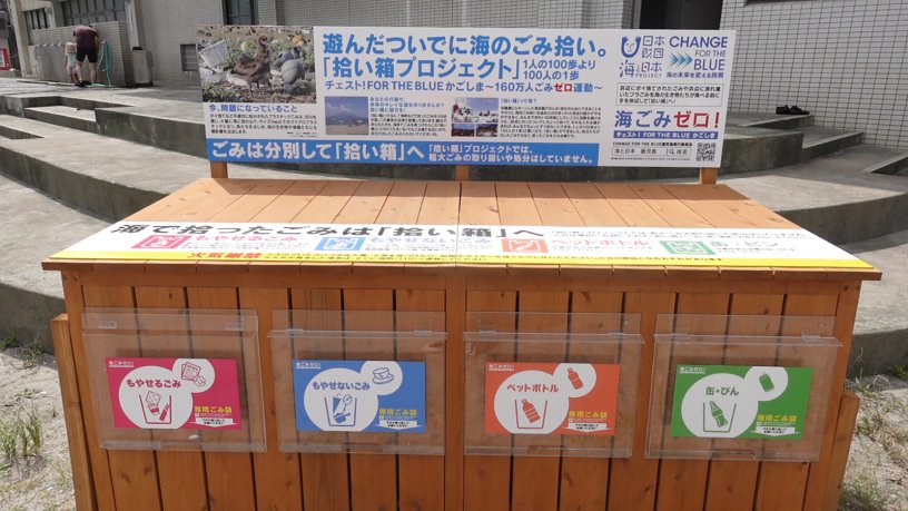 鹿児島では、観光客も含め、拾った人がごみを入れる「拾い箱」を考案し、人が来れば来るほど綺麗になる仕組みをつくっています。